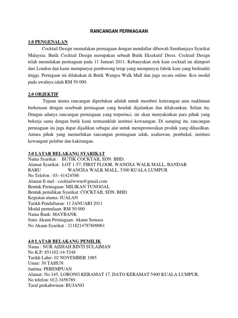 Contoh Rancangan Perniagaan Peruncitan